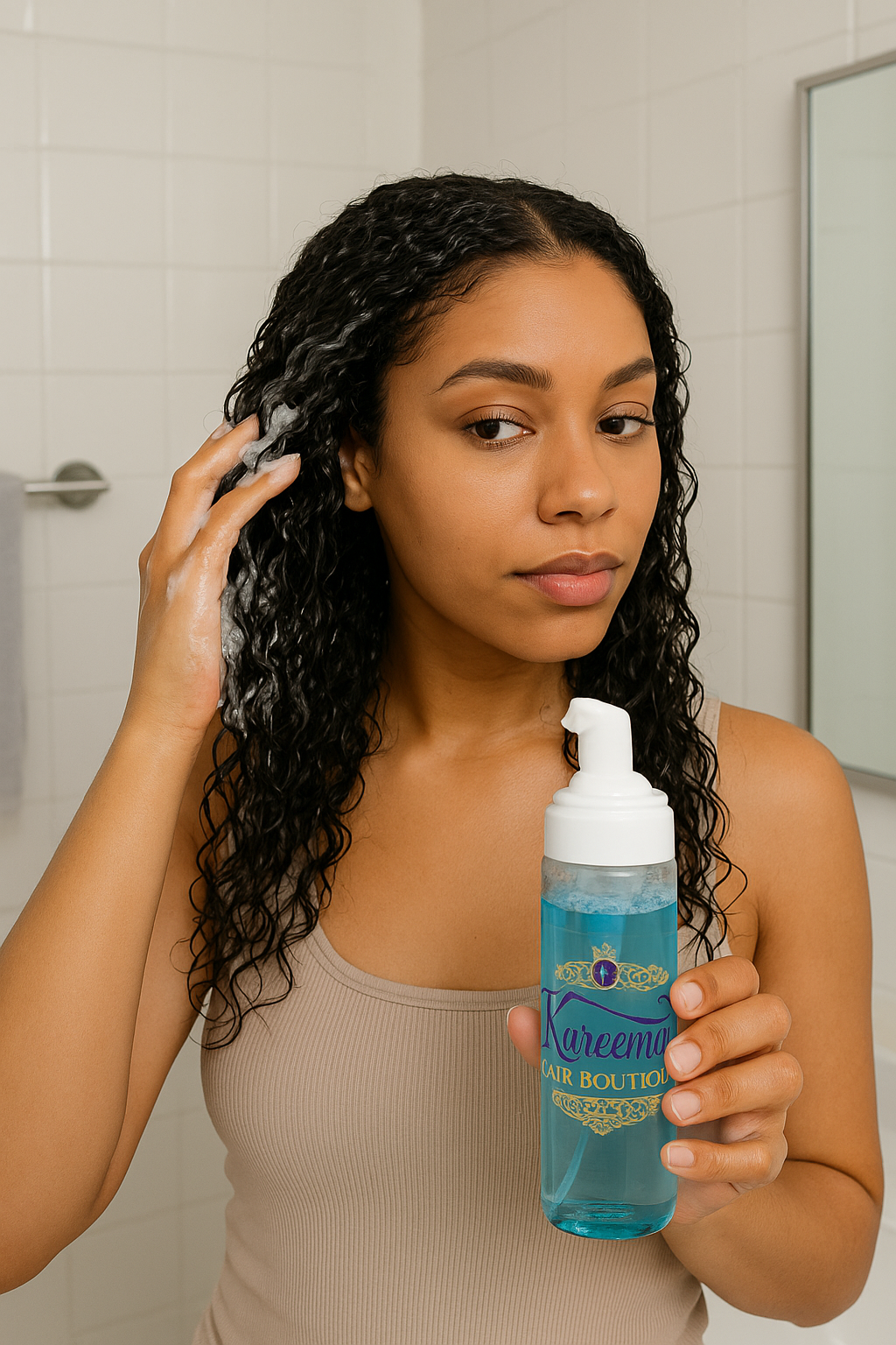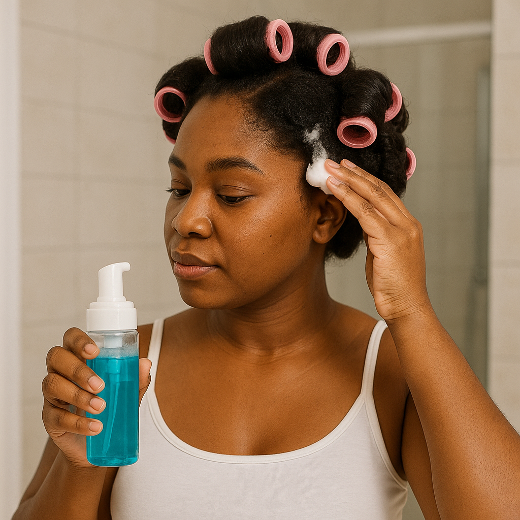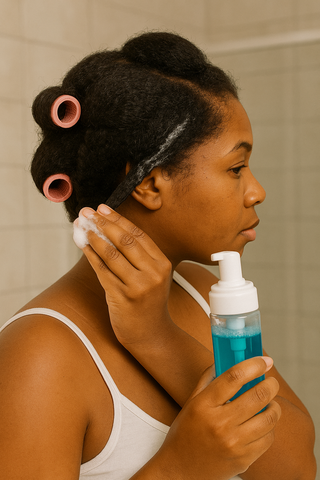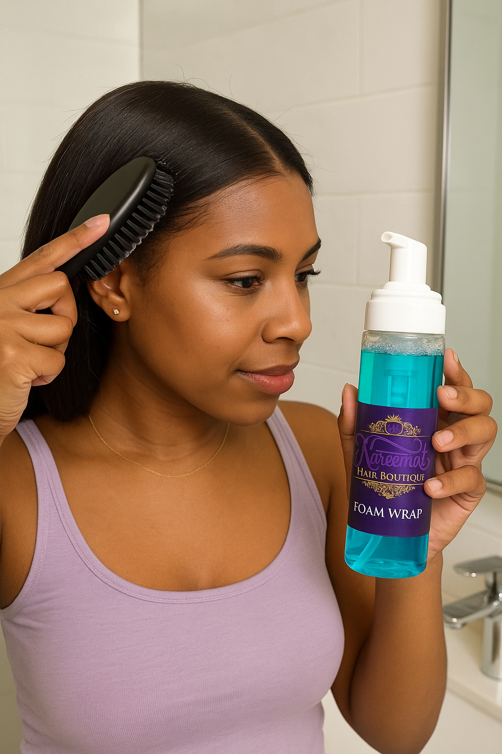 1. Apply Foam Wrap to hair. Comb out to the ends of the hair strands.