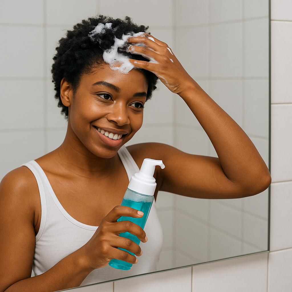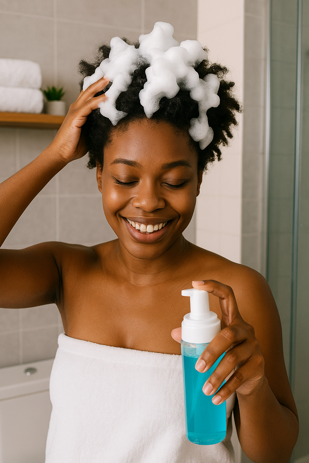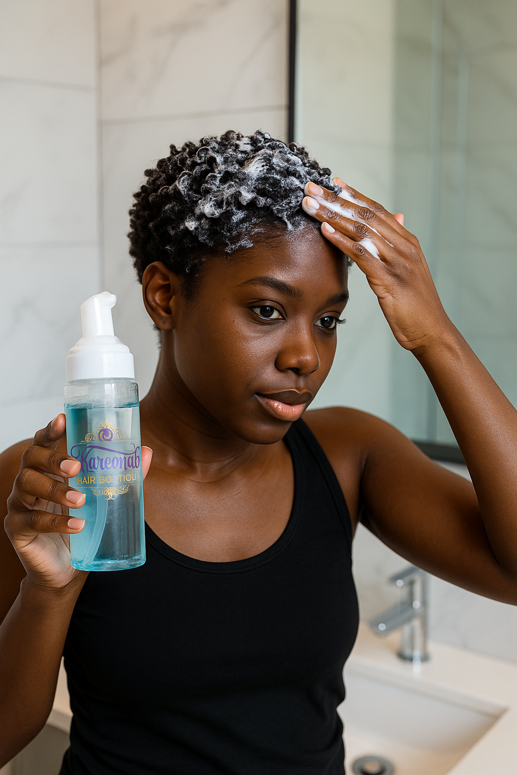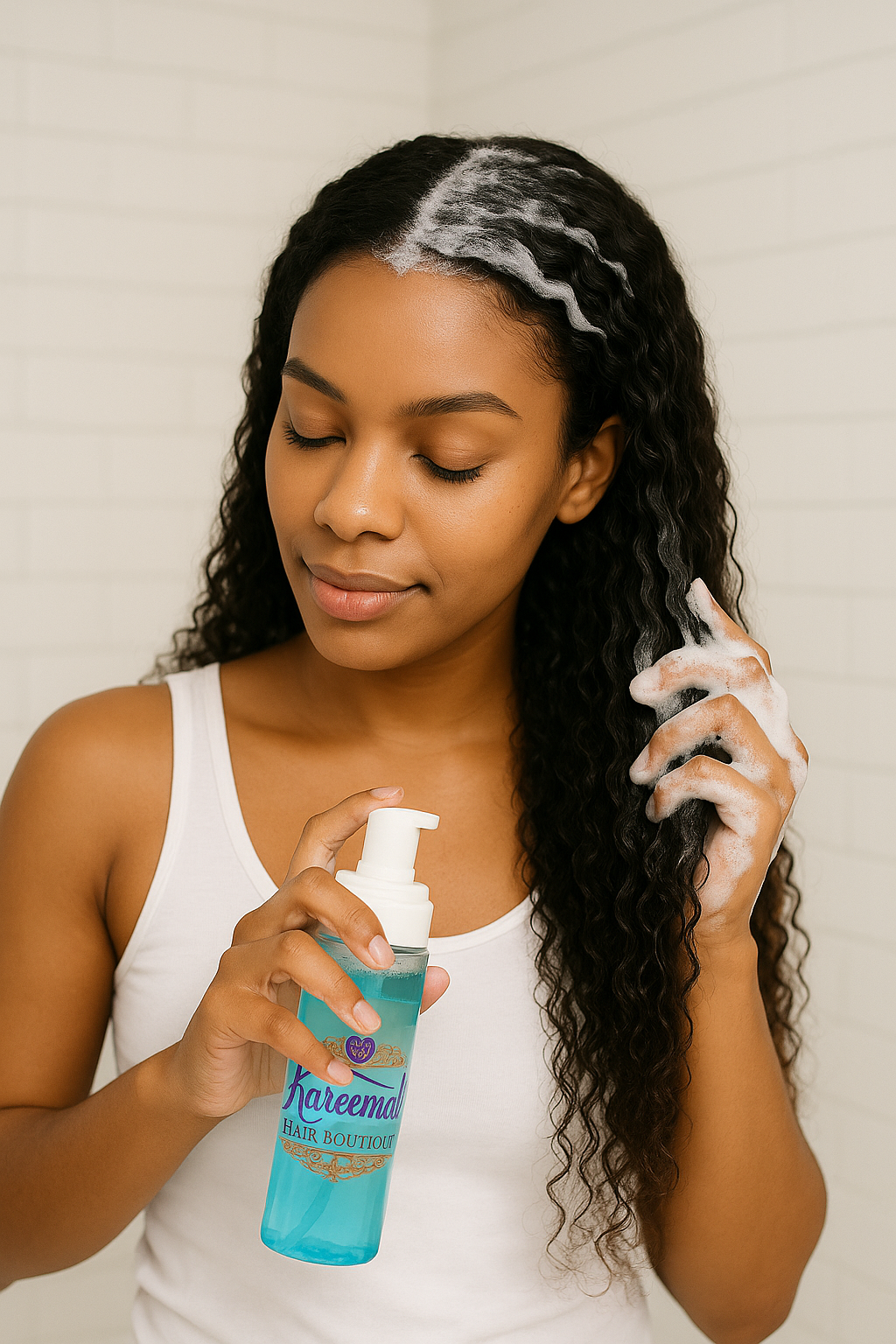 1. Apply Foam Wrap to hair. Comb out to the ends of the hair strands.