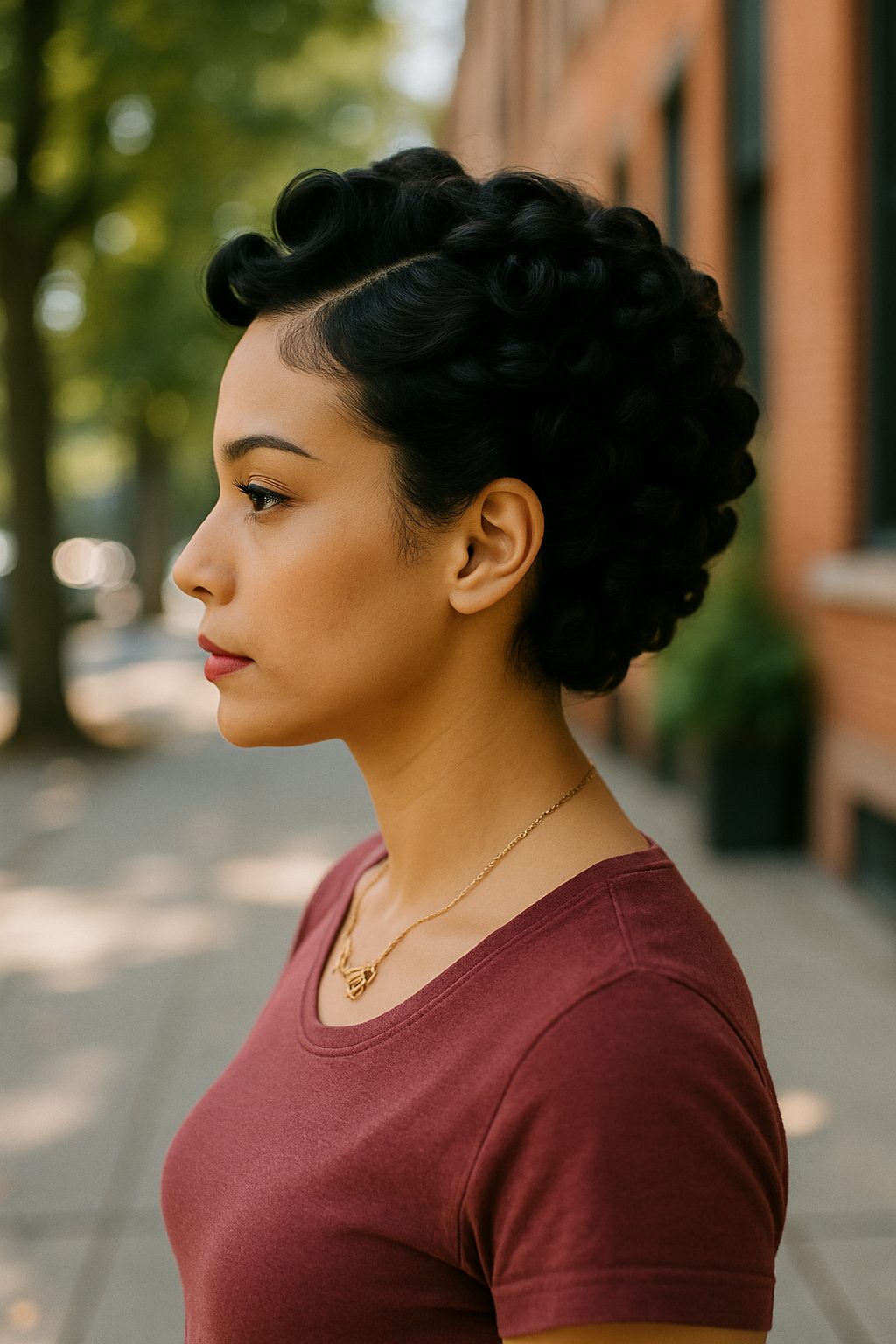 ✔ Retro Pin Curl Style – timeless vintage-inspired look